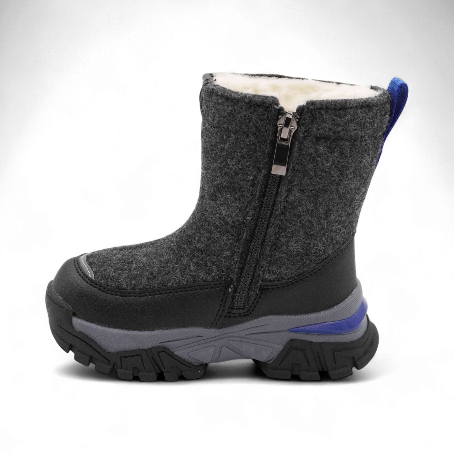 Комфорт: удобная подкладка и стелька из натуральной (набивной) овечьей шерсти создают ощущение тепла, позволяя вашим детям наслаждаться зимними прогулками без дискомфорта.