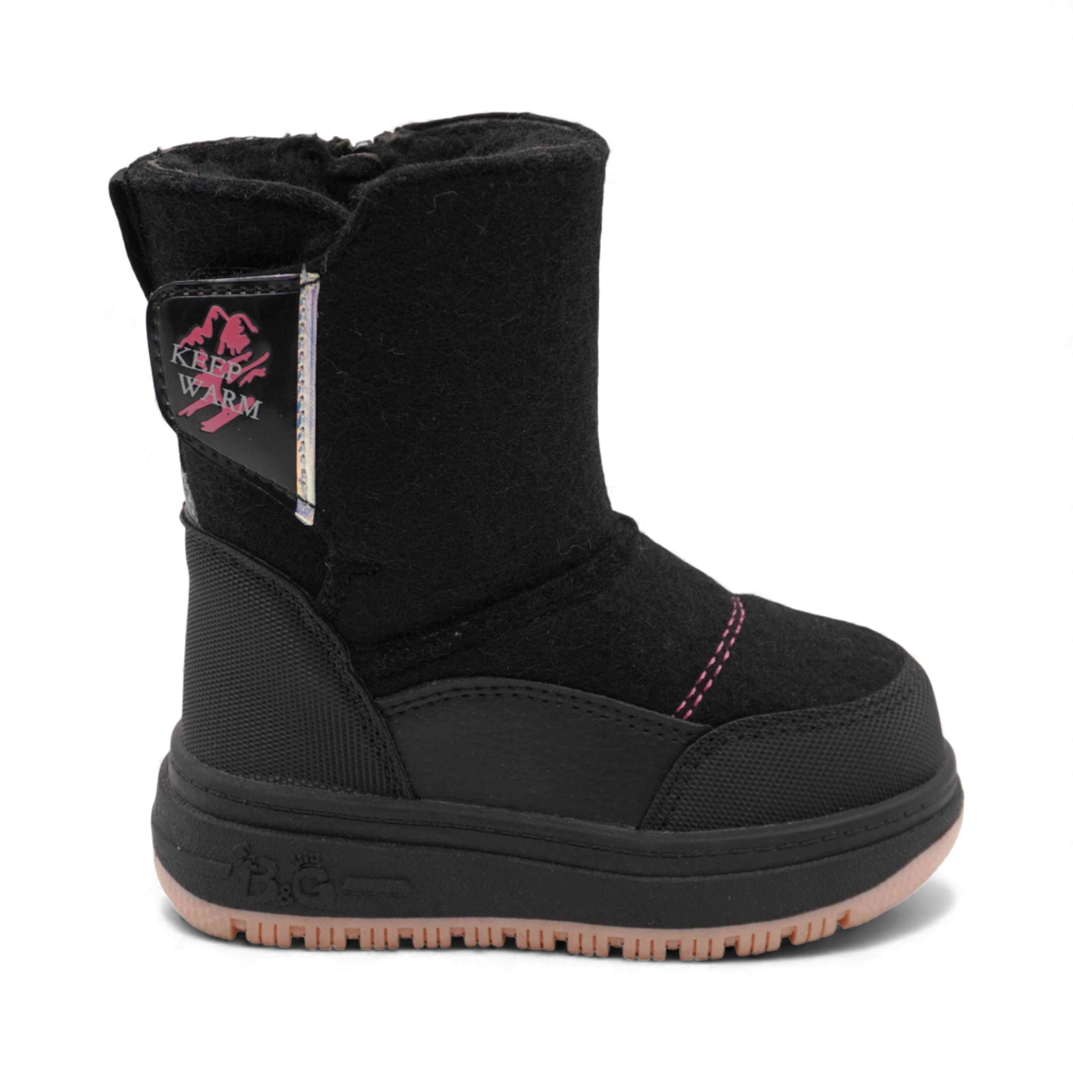 Комфорт: удобная подкладка и стелька из натуральной (набивной) овечьей шерсти создают ощущение тепла, позволяя вашим детям наслаждаться зимними прогулками без дискомфорта.