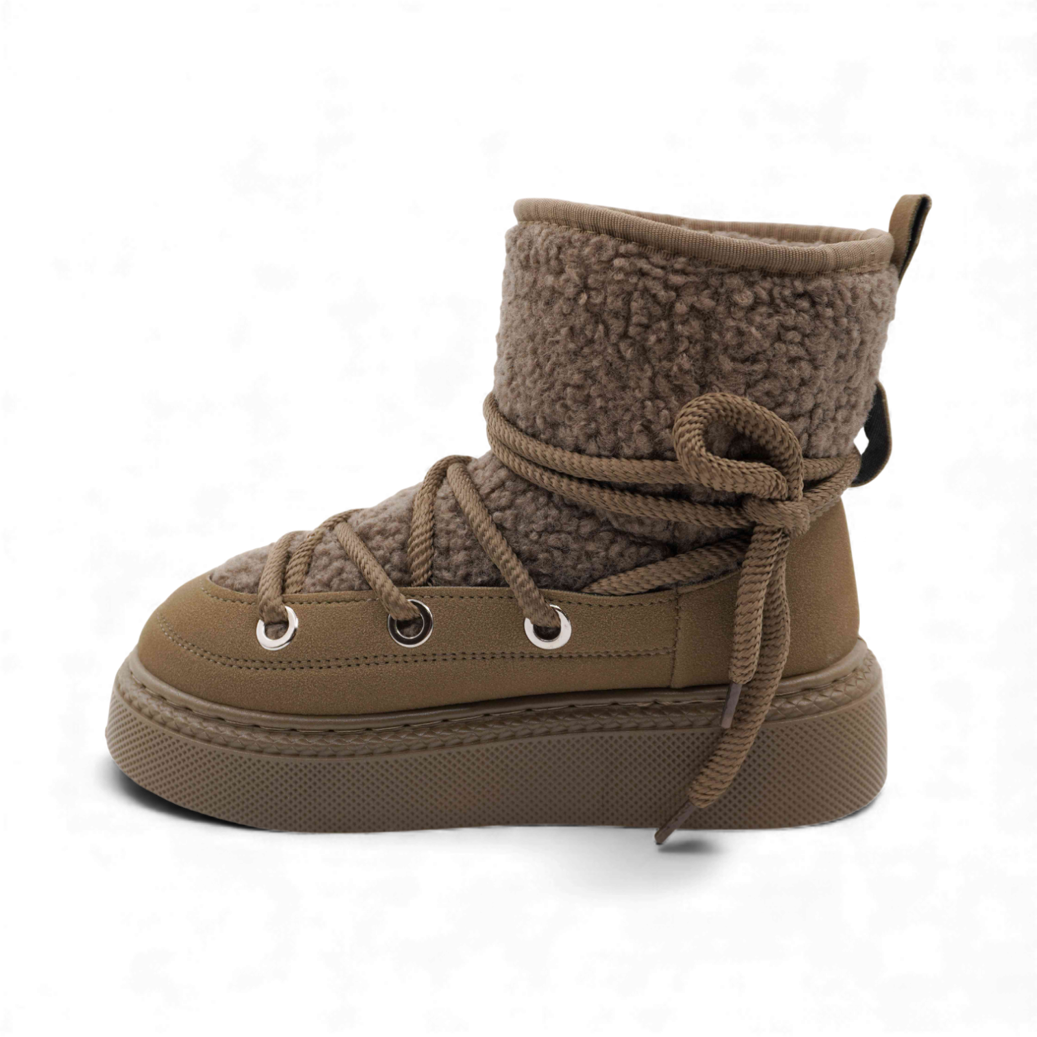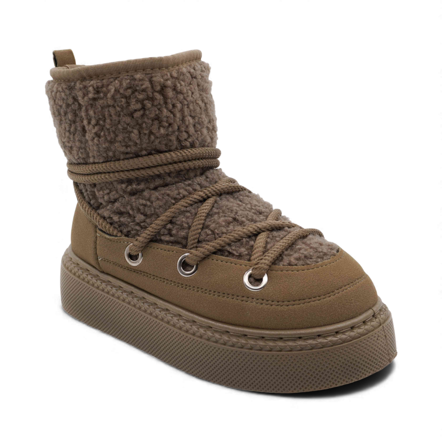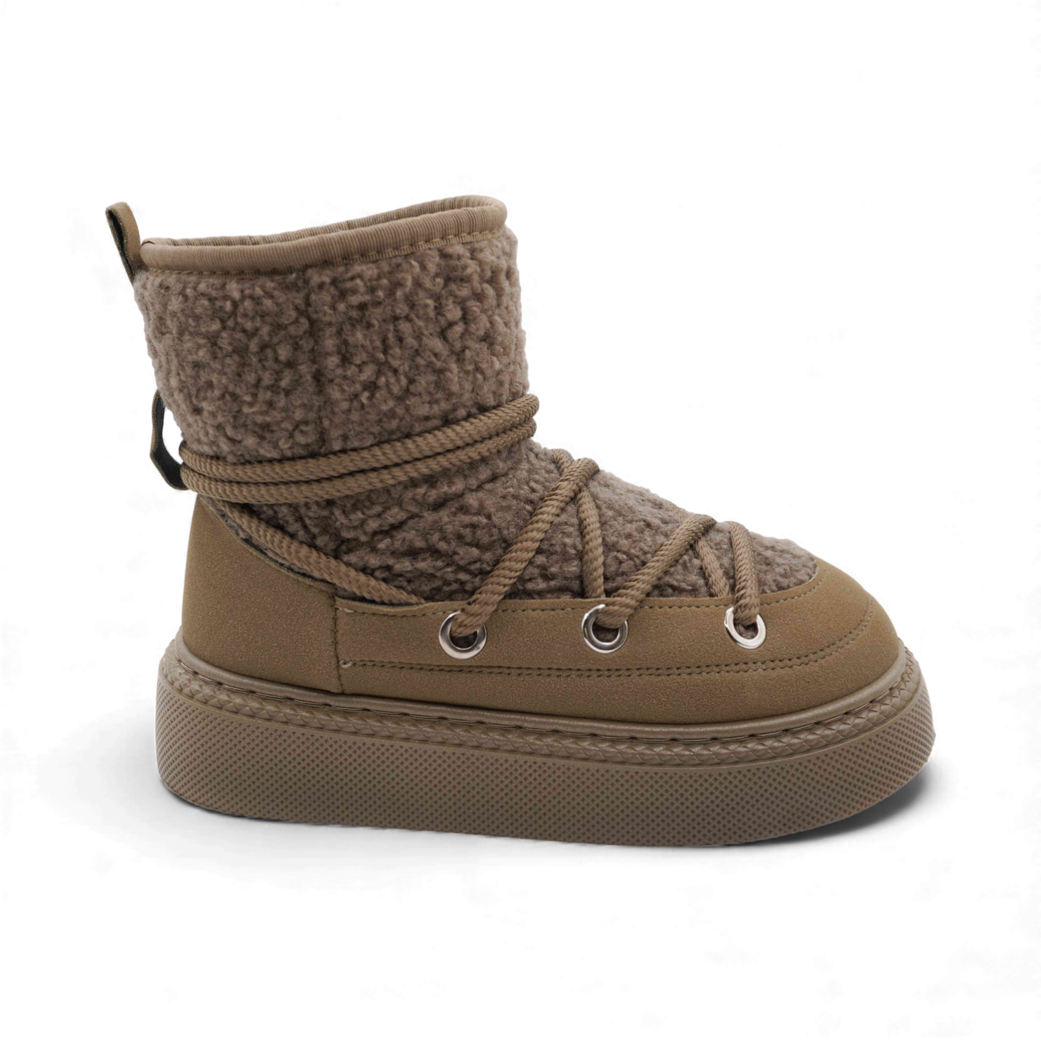 Материал: угги выполнены из искусственного замша, который отличается своей прочностью и стильным внешним видом. Внутренняя часть обуви утеплена мягким мехом, что гарантирует комфорт и тепло даже в самые холодные дни.