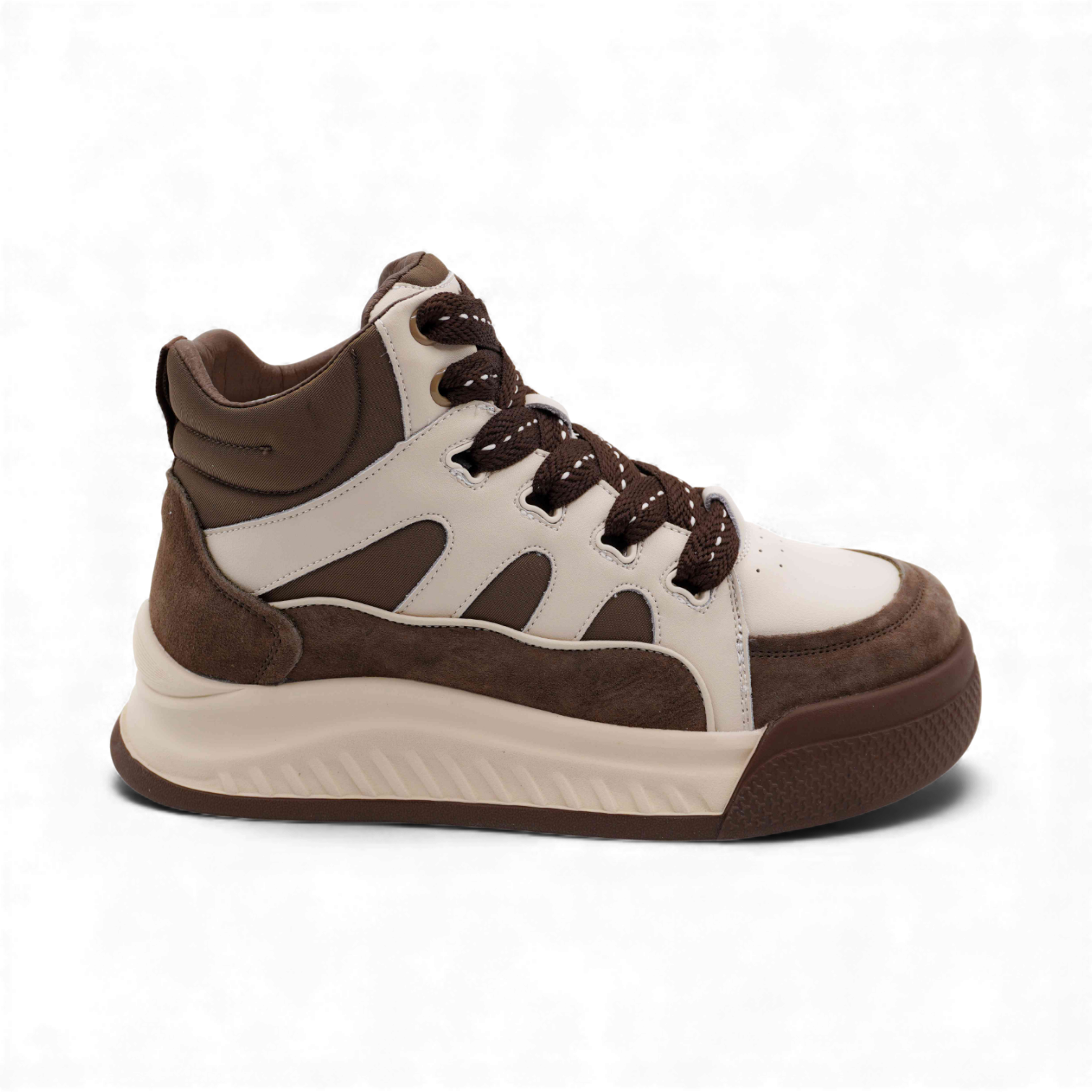 Кроссовки высокие из натуральной кожи MS-S294 коричневые