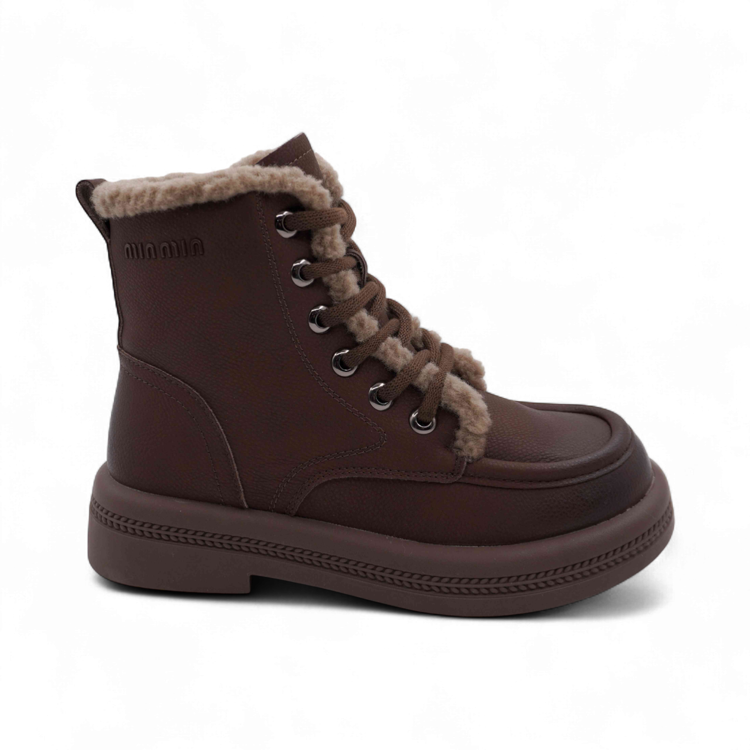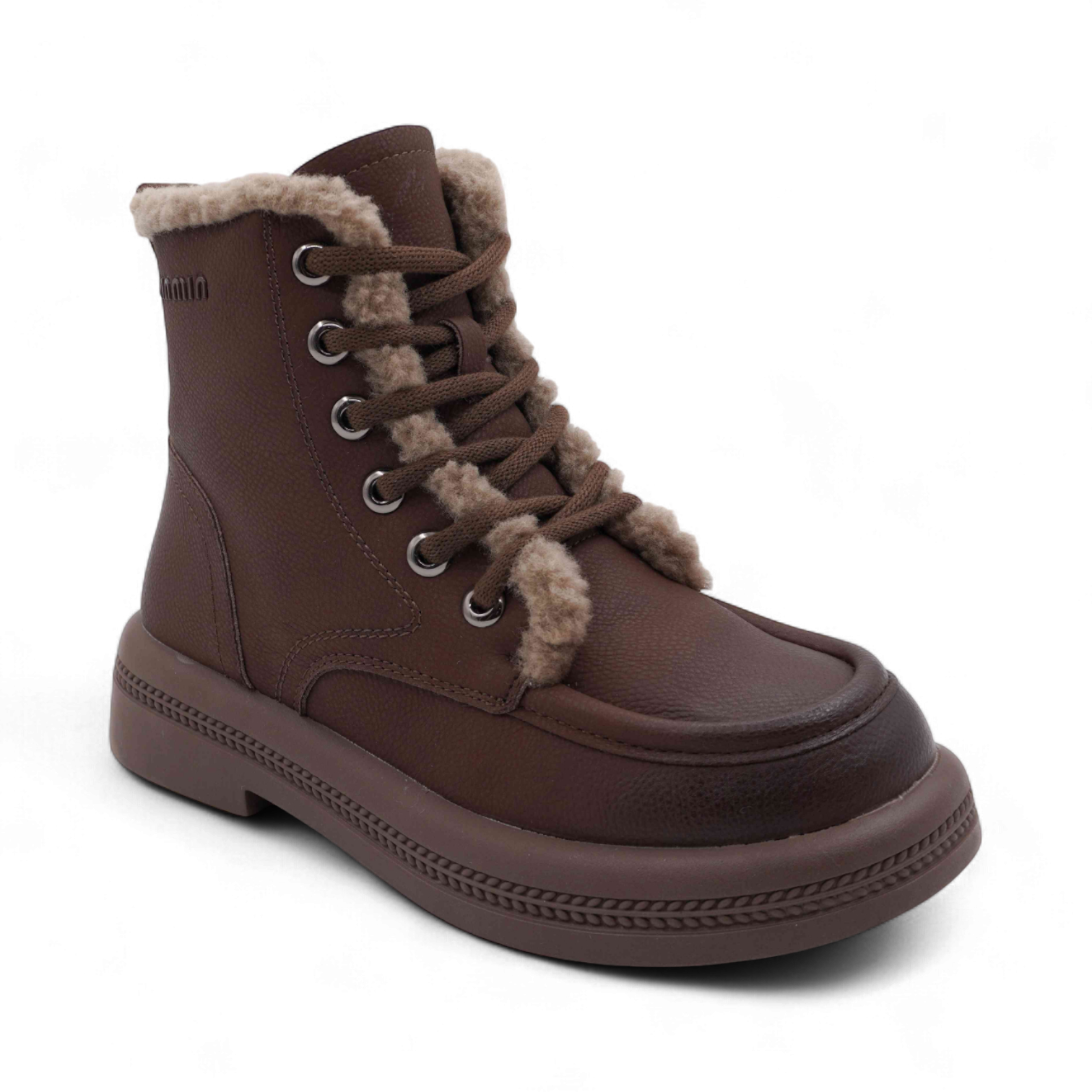 Ботинки из натуральной кожи на меху P-ML01-5 коричневые