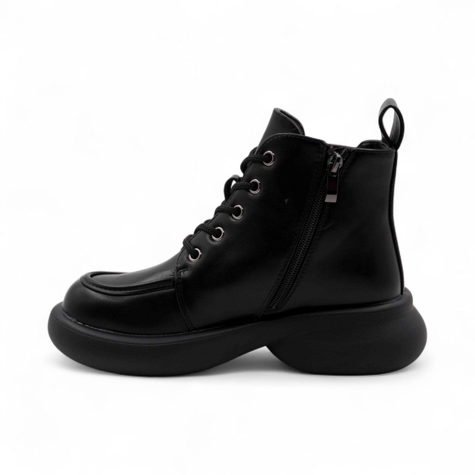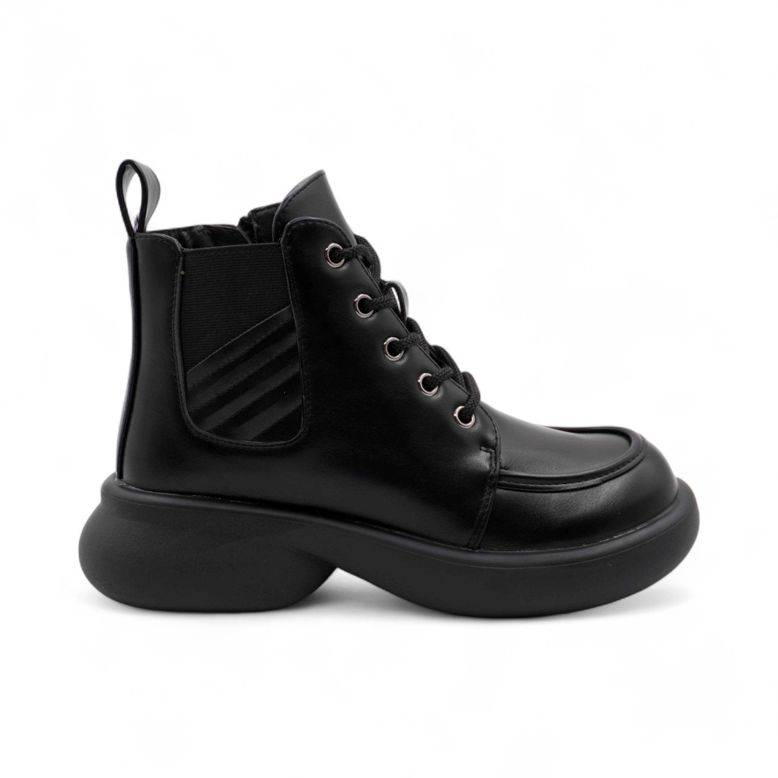 спереди шнуровка, сбоку замок;