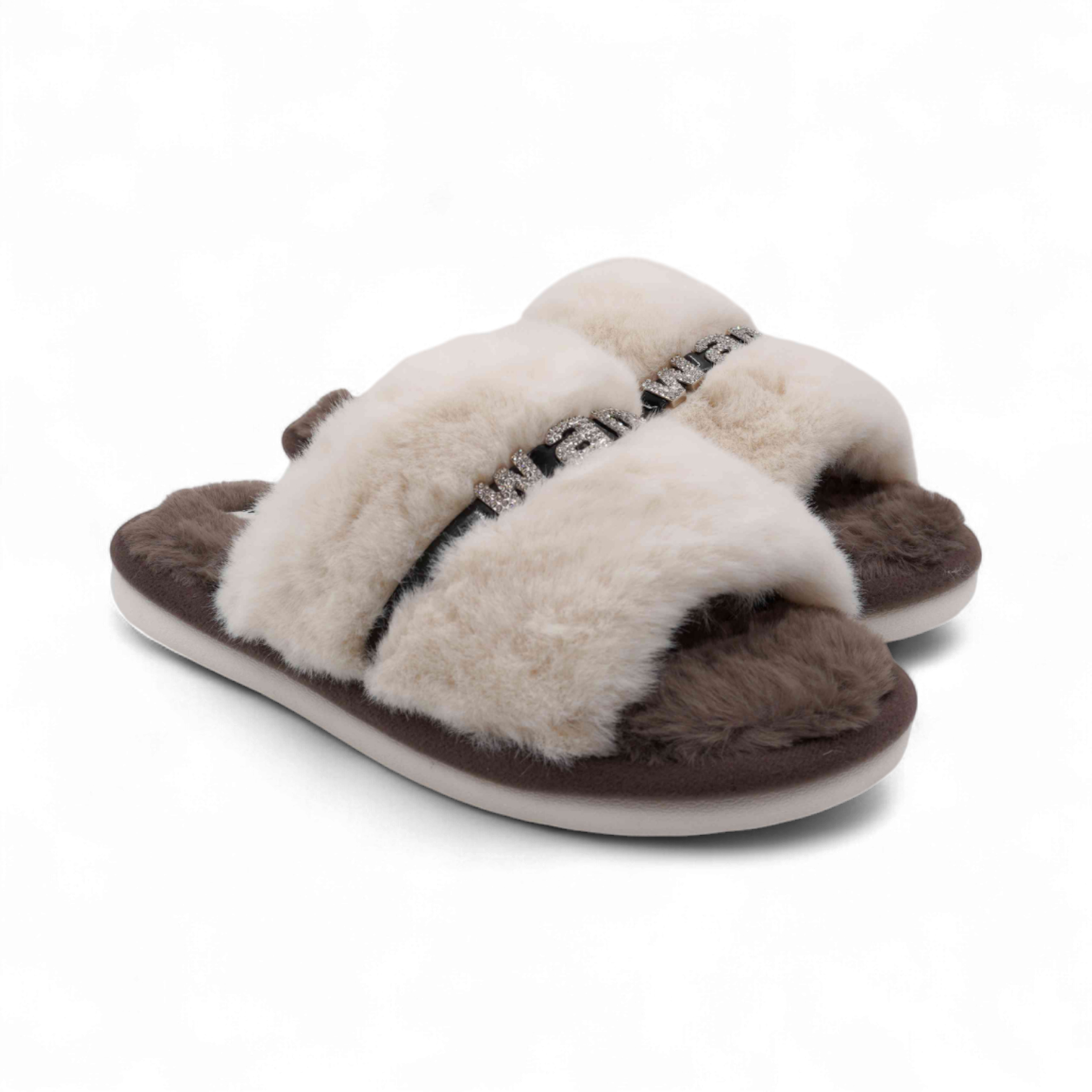 Тапочки меховые 10215 бежево коричневые